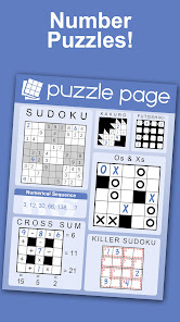 パズルページには、クロスワード、数独、ノノグラム、ワードサーチ、コードワードなどの古典的な頭の体操を含む 20 種類以上のパズルが含まれており、新しいパズルタイプが定期的に追加されます。