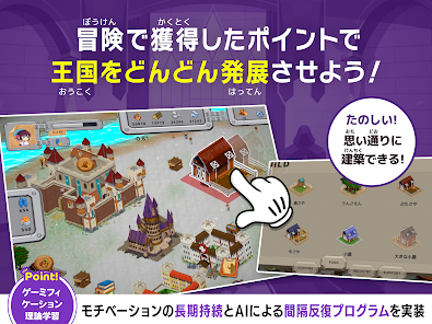 クリアしていくと王国を築く資材が貰えるため、街づくりをしていく感覚で楽しみながら英語の学習ができます。
