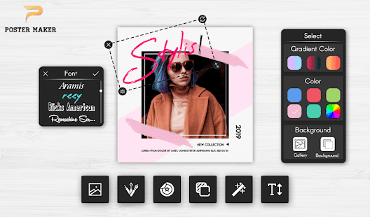 Poster Maker Canvas Design アプリは、無料のオンライン ポスター、チラシ、バナー メーカー、ロゴ、またはチラシ エディターで、ビジネス、ショップ、レストラン、オフィス、またはソーシャル サイトのポスター、チラシ、およびバナーを作成したり、写真を編集したり、テキストを追加したりするのに役立ちますポスター デザイン フォントを使用して、素晴らしいステッカーを追加し、ギャラリーから写真を追加して、いつでもどこからでも完璧なポスターを作成できます。