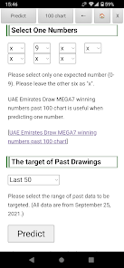 このソフトウェアは、「UAE Lotto Mahzooz 当選番号 100 を超えるチャート」、「Emirates Draw EASY6 当選番号 100 チャートを超えるチャート」および「Emirates Draw MEGA7 当選番号」を使用して、1 つまたは 2 つまたは 3 つの数字を自分で予測する必要があるため、完全な予測ソフトウェアではありません。過去100チャート」。