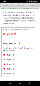 分析ボタンをクリックすると、選択した各数字と、予測時と同じ設定で他の数字との相性を確認できます。