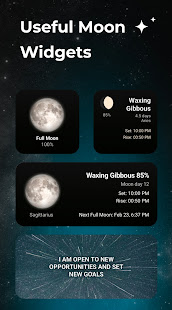 月の満ち欠けウィジェットで、今後の月の満ち欠けに関する便利な通知を設定します。星占いと出生チャート