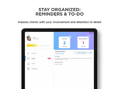 クライアントアプリは、クライアントと対話するための新しい方法を提供します。同じタスクをどこにいてもリモートで実行できるようになったため、デスクでの物理的なプレゼンスは不要になりました。外部の会議、外出先、自宅。メモを作成し、連絡先をインポートし、リマインダーを追加し、メールとSMSを送信し、クライアントアプリから顧客に電話をかけます。