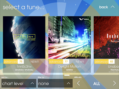 デフォルト楽曲22曲に解禁楽曲5曲と有料配信の66曲、合計93曲と250本以上ある譜面の大ボリュームがあなたのチャレンジを待っている。トップクラスのEDMプロデューサーと実力派同人作曲家に、大手音楽レーベルよりリリースされた楽曲がここに集結。
