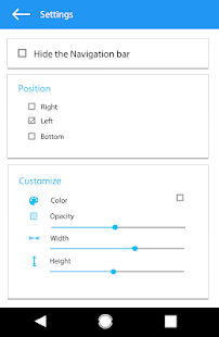 画面の下部に戻る、ホーム、最近のボタンが付いたナビゲーションバー。希望の色の高さと幅でカスタムナビゲーションバーを作成します。ボタンを保護し、アクションにすばやくアクセスするためのナビゲーションバー。画面の下部に戻るボタン、ホームボタン、最近のボタンを表示する、高速でスムーズな完全無料のナビゲーションバー。ホーム画面に戻るための矢印キーによるクイックナビゲーションをレンダリングする究極のコントロールナビゲート。画面上の戻る、ホーム、最近のアプリに移動する簡単なコントロール。ナビゲーションバーを上にスワイプしたり下にスワイプしたりするのに役立つ最高のナビゲーションバーを水平または垂直に配置します。