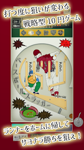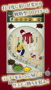 「ヒット」「2塁打」「3塁打」のレーンを狙って10円玉を飛ばしランナーを進めます。