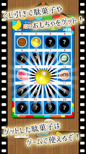 くじ引きでは懐かしい駄菓子やおもちゃが当たり、10円玉の代わりに一部のゲームで使用することができます。