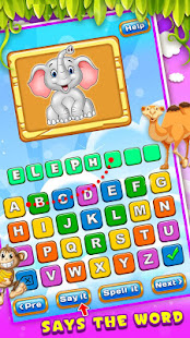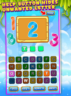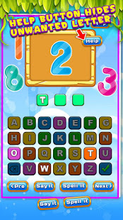 'Help' button hides the unneeded alphabets on the keyboard, so the kids only see the alphabet that makes the spelling. That way they know what letters make the word