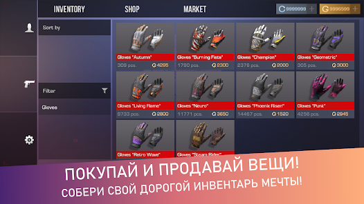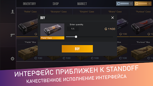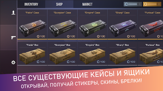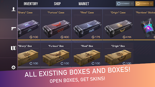 Case Simulator For Standoff は、あなたが長い間探していたゲームです。 3D モデルを回転できる最初で唯一のゲーム。ゲームでは、ケースやボックスを開いたり、さまざまなスキンをノックアウトしたり、マーケットで販売したりできます。将来的には、新しいものを作成する機能が追加されます。このゲームは箱を開ける楽しみのために作られているので、このゲームを楽しんでください!