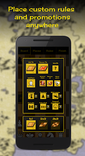 通常のチェスの動きの組み合わせで新しい作品を作成します。ピースは近くの部分を強化または制限することもできます。 16×16までの有効または無効なタイルを使用して新しいボードを作成します。どこでも、任意の部分の昇進規則を配置します。テレポーター、聖域などのようなルールを置きます。その後、コンピュータの対戦相手はコンピュータサイエンスからの概念を使用してあなたの作品を理解し、あなたと対戦します。