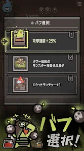 タワーを配置して進路を遮断し、戦略的にバフを選んで強化