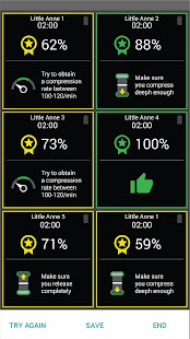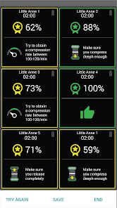 - 心肺蘇生 (CPR) の質をサポートするため、本アプリはライブで累積的な以下のフィードバックを行ないます。