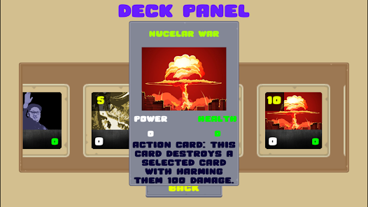 Use Action, Wall and Battle Cards to defeat your enemies. Improve your level and claim new decks and cards.