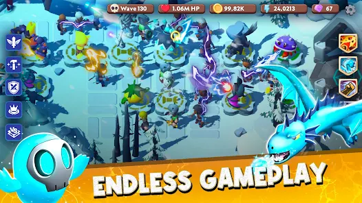 Strategize by placing up to 10 monster towers at a time. Determining the most effective combination of their elemental skills and passive boosts will keep you entertained and speculating for weeks!