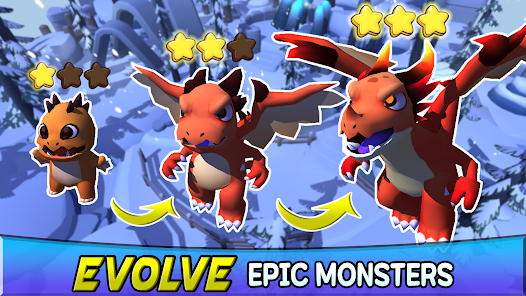 Each monster has 3 evolutions that provide massive upgrades to power.