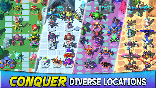 Idle Monster TD Evolved is an endless idle Tower Defense game of epic monsters vs evil humans set in a cute 3D fantasy RPG world. Unlock, upgrade, and most importantly, EVOLVE over 120 unique monsters to defend the portal from an infinite swarm of invading humans. Strategize the most effective placement of monsters to optimize their powerful abilities. Management is crucial in this idle, tap tycoon, auto battler game!