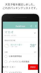 PackPoint は真剣な旅行のプロのための無料パッキングリストオーガナイザーかつパッキングプランナーです。PackPoint は、旅行の長さや行き先の天候、旅行中の行動計画に応じて、旅行鞄やスーツケースに何を詰めるか決めるお手伝いをします。