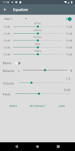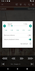 • Variable playback speed (0.5 to 4x), trim silence, pitch control, and volume boost, equalizer and balance. Can set global defaults and per book override.