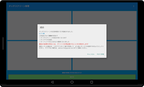 どのデバイスのタッチ スクリーンも、使用とともに劣化します。 その結果、タッチの遅延が発生し、タッチ スクリーンが応答しなくなることがあります。 タッチ スクリーン修理アプリは、タッチ スクリーンの応答時間を分析して短縮し、タッチ スクリーンをより快適に使用できるようにします。