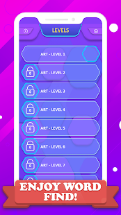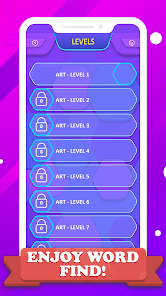- Find as many words as possible to unlock levels and earn extra bonus coins.