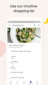 ✔おいしい料理のレシピのために自動生成されたショッピングリストを使用して、食料品リストを計画します
