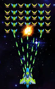 Galaxy Invaders スペースシューティングは、古典的なシューティングげーむの感触と現代的なメカニズムの組み合わせであり、Galaga、Galaxia、Galaxian、1945、Air Force、Chicken Shootなどの古い学校のあーけーど船体シューティングゲームを彷彿とさせるゲームプレイを備えています。いくつかの重要な機能