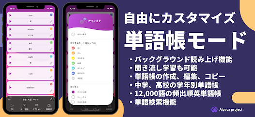 カスタマイズ性が高く、自分のオリジナル単語帳を作成することも可能。読み上げ機能を使えば、リスニングの強化や、通勤・通学中の聞き流し学習も可能です。