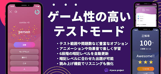 美しいデザイン、楽しく学習しながら確実に覚わる英単語帳アプリを目指しました。膨大な数の英単語を収録しながら、覚えやすいシンプルな対訳こだわり、中学や高校の学年レベルに合わせて毎日コツコツと学習を続けていくことができます。