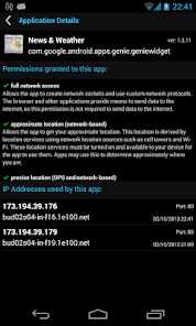 -リモートサーバーに接続する各アプリと、アプリが使用するネットワーク接続に関する詳細情報を取得します-キャプチャされた各パッケージに付与されたアクセス許可と、アプリが使用するすべてのIPアドレス。