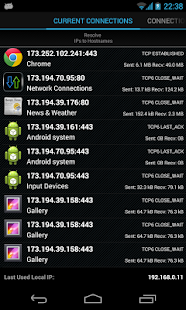 Androidデバイスとの間のすべてのインバウンドおよびアウトバウンド接続を表示および監視(追跡)する強力なツール。低レベルの接続キャプチャモジュールは、最小限のバッテリ使用量で最高のパフォーマンスを保証します。