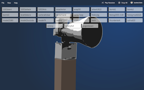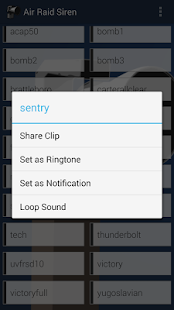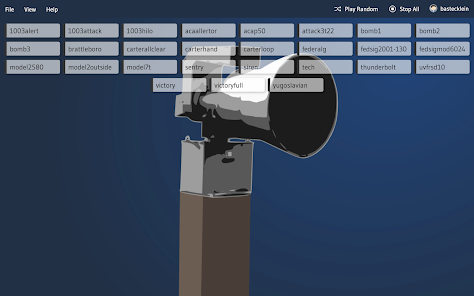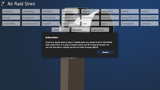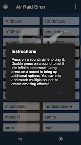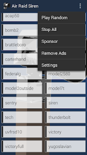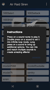 Air Raid Sirenは、お気に入りの空襲と竜巻警告サイレンのクリップをフィーチャーしたサウンドボードアプリです。 多くの異なる国からのクラシックで人気のあるサイレンのすべてがここにあります。 再生するサウンドをタップするか、長押ししてその他のオプションを表示します。 アプリメニューに追加のカスタマイズ設定があります。