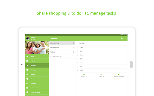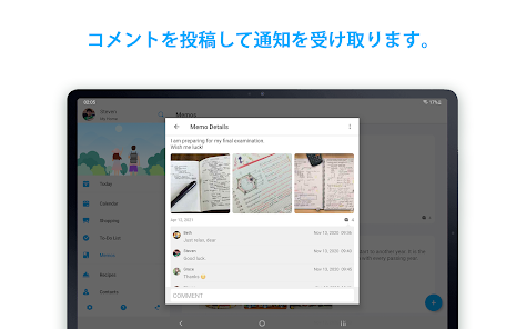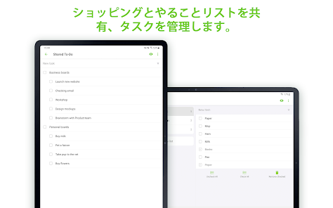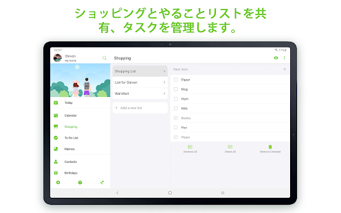 - 食料品や買い物リスト、その他を共有します