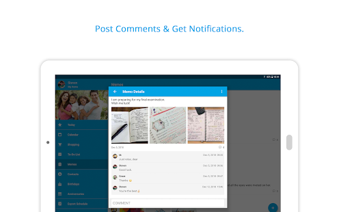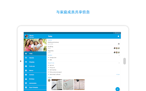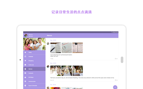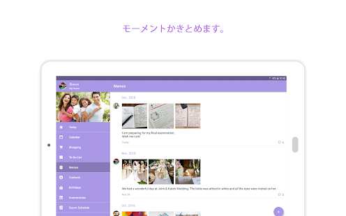 - 夫婦、お母さんと子供たち、さらには家族全体の間でイベントを共有します