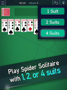 人気の1スーツ、赤と黒のカードデッキを備えたクラシックな2スーツ、または黒と赤のカードを同じスーツに降順でのみスタックできるエキスパート4スーツモードを選択します。