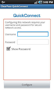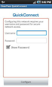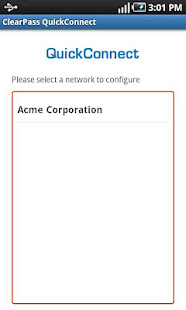 This application must be used in conjunction with ClearPass QuickConnect server side software deployed in your organization. After installing the application navigate to the URL provided by your organization to start automatic configuration of your device.