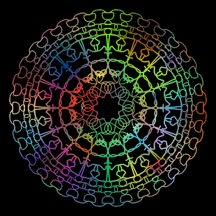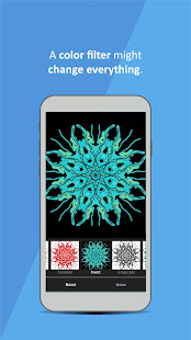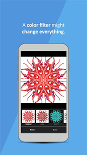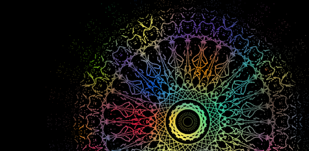 Create your own work of art. Choosing a brush color is simple. Using the mirror option or changing the amount of facets keeps creating new mandala patterns.