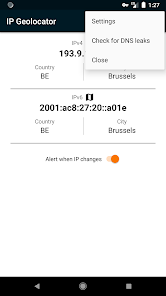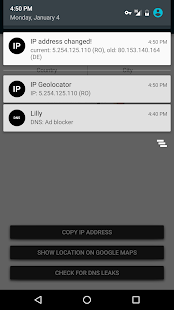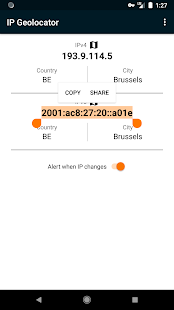 It also notifies you, if you have a broken VPN or proxy connection, when the country-code and/or IP address changes unexpectedly. You can set an alert with a special ringtone and or vibration.