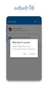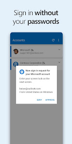 Microsoft Authenticator は、職場アカウント、学校アカウント、Microsoft 以外のアカウントの多要素認証もサポートしています。本アプリでは、パスワードの後にセキュリティの第 2 レイヤーが用意されています。ログイン時、パスワードの入力後に、別の方法で本人であることを証明するように求められます。Microsoft Authenticator に送信される通知を承認するか、本アプリによって生成される確認コードを入力します。