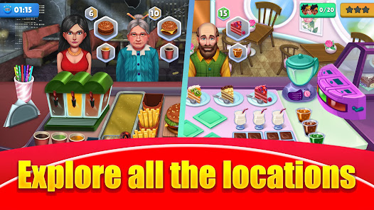 Throughout the game, you will experience authentic fast-paced cooking gameplay. learn new recipes: toasts for breakfast, ramen for lunch, or pizza for dinner, and test your time-management skills. You will have to utilize strategic thinking to optimize cooking times and take on a role of a master chef as well as a renovator, just like in real life. As the game progresses, you will discover more tasty ingredients allowing you to cook more complex dishes. Try and unlock all of the kitchen utensils such as toasters, popcorn & ice-cream machines, ovens, pans, and more! Master your cooking skills, be fast, and gather all stars in each renovated restaurant.