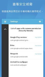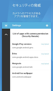・ このアプリは、ウイルス、管理ソフト、スパイウェア、マルウェアなどのプライバシーを侵すアプリが、スマートフォンのカメラを使用できないようにします。