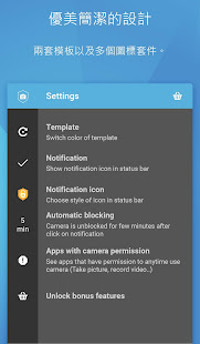 ・ 全てのカメラのリソースをブロックし、その他のアプリと全体のアンドロイドシステムからのカメラのアクセスを無効にします (ルートの必要なし)