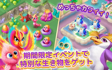 エバーマージキングダムは、オープンワールドスタイルのプレイなので、可能性と組み合わせは無限大新しいマージ可能なアイテムを見つけたり、おとぎ話の登場人物や生き物たちに出会ったりしながら、パズルクエストをクリアして、新しい世界を探索していきましょう。