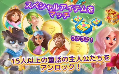 コレクションを築こう マッチマージして城を建設し、おとぎ話の登場人物や空想上の生き物をアンロックして集めましょう。