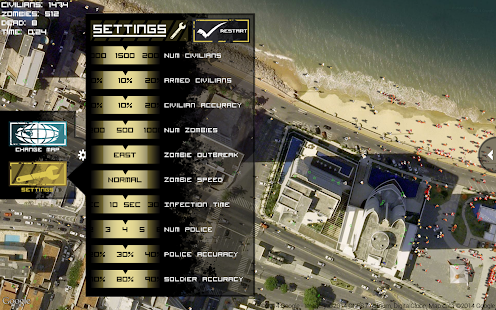 現実世界の環境でゾンビのアウトブレイクが展開するのを見て、アウトブレイクのパラメーターを好みに合わせて変更します。昔ながらのスロームーバーと新しいファーストムーバー、どちらが好きですか?住民は武装していますか?彼らはどれだけうまく撃つことができるでしょうか?何人の警察がパトロールするのでしょうか?自分のアウトブレイクをカスタマイズし、混乱が展開するのを見てください。