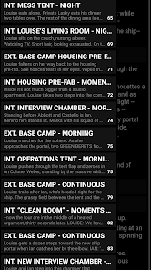 - Scene navigation: swipe from the left edge of the screen to see a list of all the scenes in the script. Tap one to navigate directly to that scene.