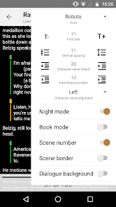 - Read scripts by scrolling vertically like on a website (default) or by flipping pages by tapping left and right on the screen like in an ebook ('Book mode')