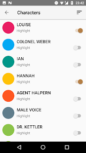 - Character highlighting (long press on a character's dialogue to quickly access that character's properties)