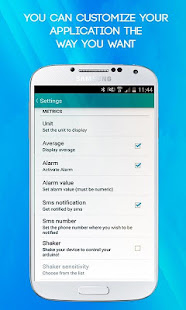 This tool was optimized to receive data via the println() function of arduino, which allows special processing of the data received, like in the "Metrics" tool. It allows you to receive only numbers and fix alarms to get notified about the variations of the value received.Once the alarm triggered, a stop button shows up, allowing you to stop it.Besides you can activate the shaking mode, that will allow you to send data simply by shaking your phone.