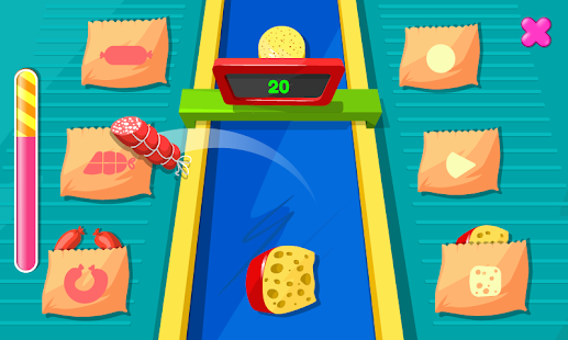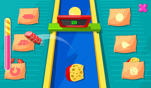 • チーズとサラミ:ベルトコンベヤーで送られてくる様々な種類のサラミとチーズを仕分けます。各アイテムをボックスにドラッグして、仕分けの速さで店一番になりましょう。