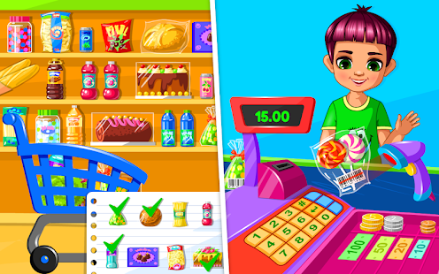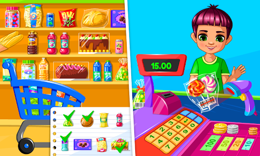 スーパーマーケットを運営して、このショッピングゲームで一番の店主になってください!